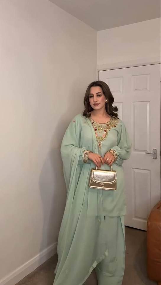 Nombre del producto:Top de bordado y secuencia de Georgette de imitación Sharara Dupatta