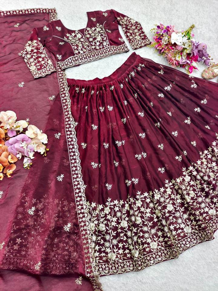 Presentamos una nueva colección totalmente cosida Pure Fendy Silk Lehenga Choli & Dupatta Set