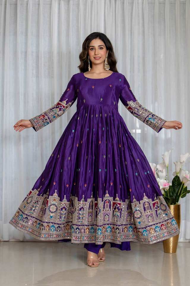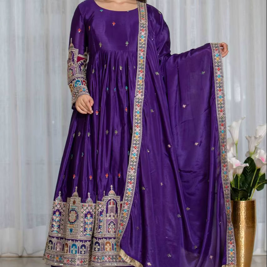 Presentamos la Nueva Colección de Vestidos de Seda Chinnon Pura y Pesada - Conjunto de Pantalón y Dupatta Completamente Cosido, Listo para Usar