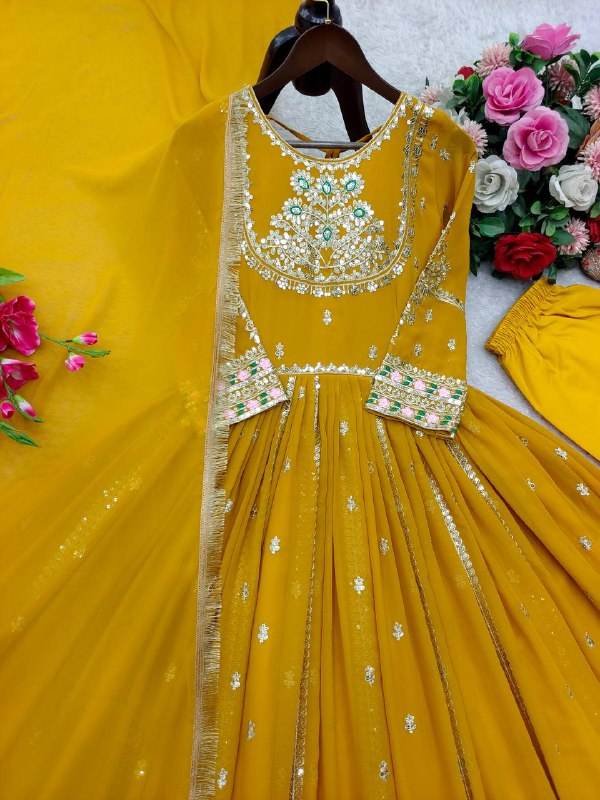 Gown Fabric:Pure Blooming Georgette With Heavy Embroidery