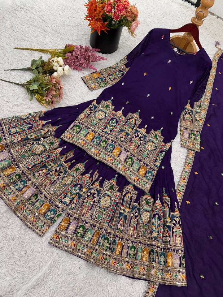 Presentamos una nueva colección de diseñadores en Pure Chinnon con una codificación de bordado pesado Dori-Sequence Work Top-Bottom y Dupatta