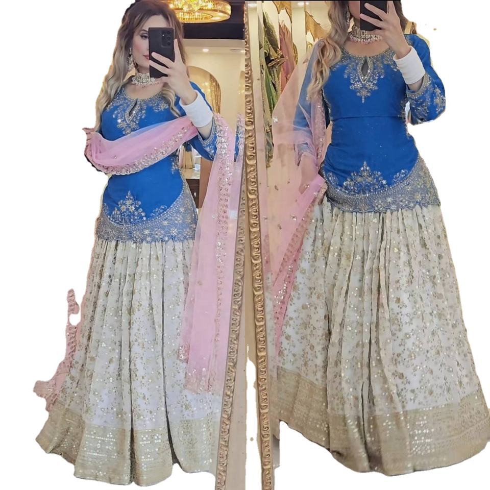 Nuevo Lehenga Choli de Diseñador FATEMA FASHION, Estilo Moderno, Seda Chinon Pesada con Relieve, Elegante para Bodas, de Secado Rápido