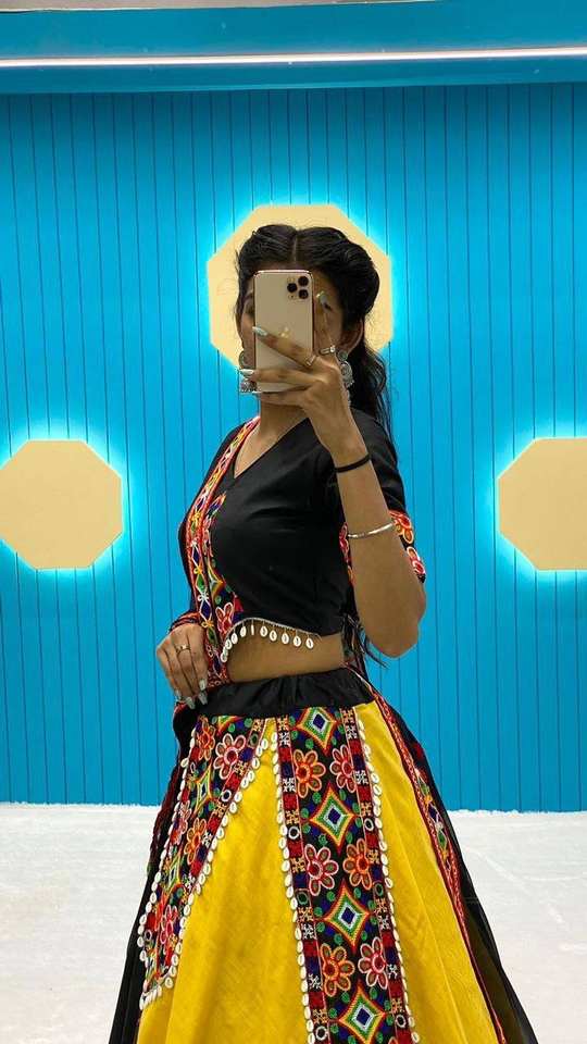 Nombre del producto:Lehenga Choli y Dupatta Algodón Gamthi Work & Kodi Work