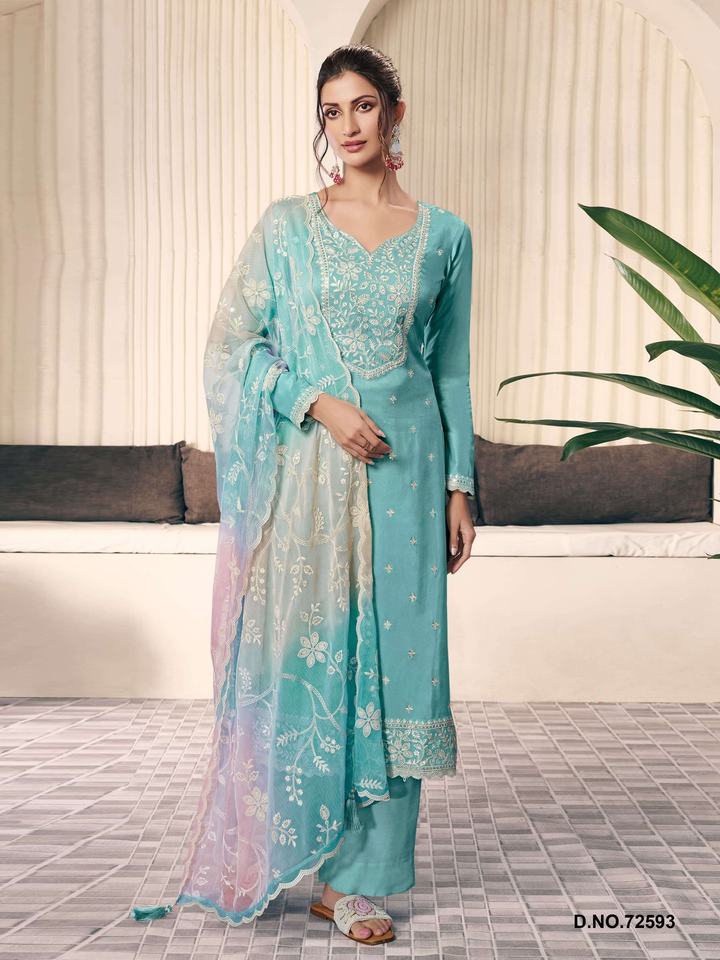 Pesado colorido Moonga hilo de seda bordado festivo Salwar trajes estilo indio y pakistaní para ocasiones de fiesta