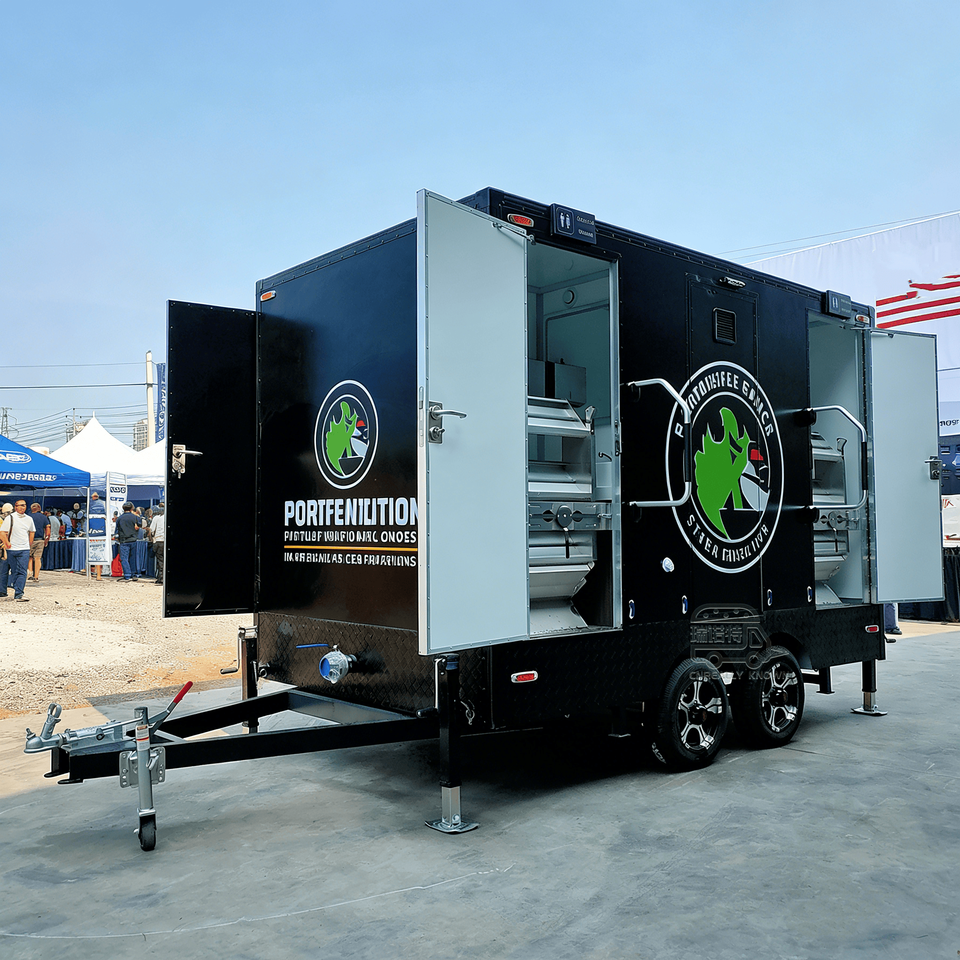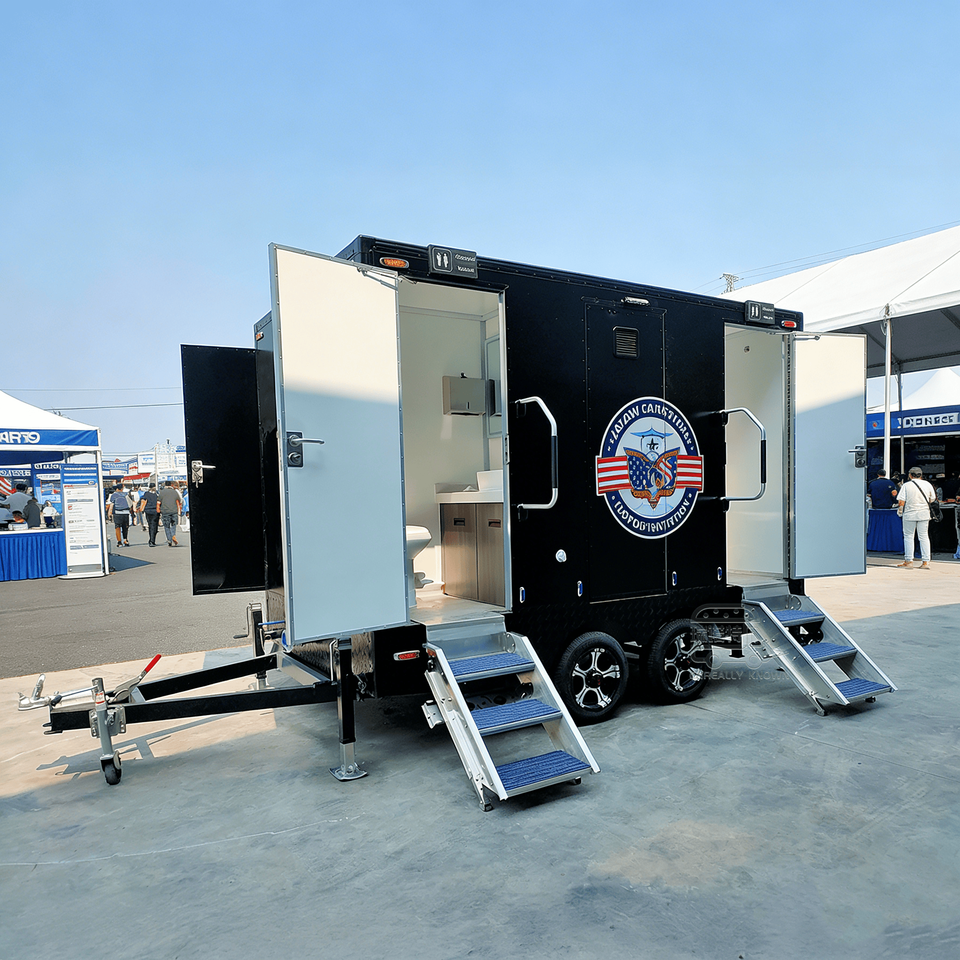 Remolque Portátil para Conferencias de Prensa, Baño con Sala de Entrevistas para Eventos Públicos al Aire Libre