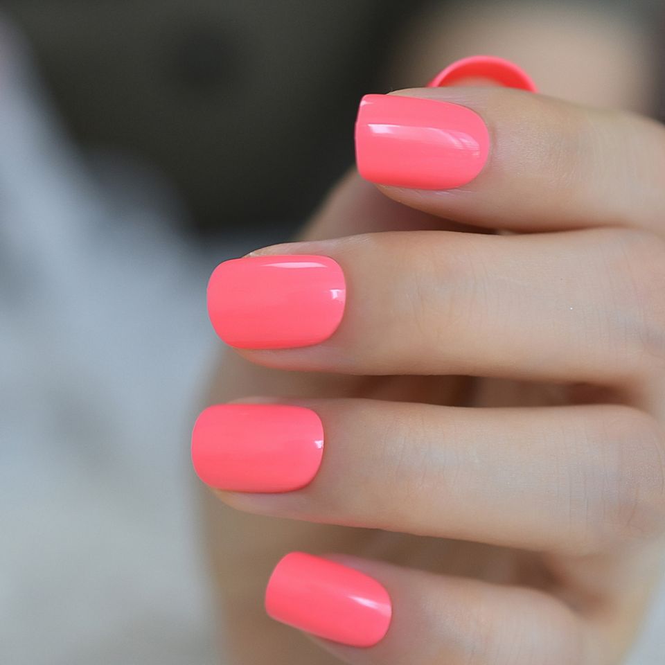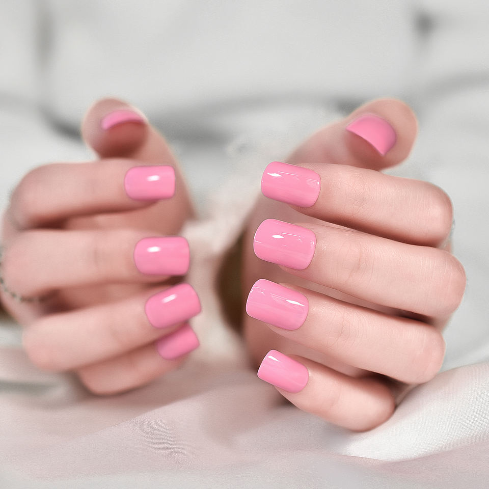 Presione las uñas en forma cuadrada para vacaciones y fiestas Color sólido Palo brillante en las uñas Cubierta completa Uñas acrílicas cortas Fakenail
