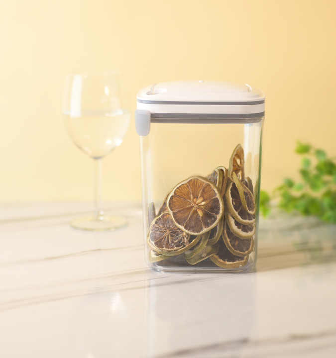 Contenedor de Almacenamiento de Alimentos al Vacío con Diseño Nórdico de 1.6L, Tipo Prensa, Organizador de Cocina Multifuncional con Tapa para Organizar Artículos Diversos