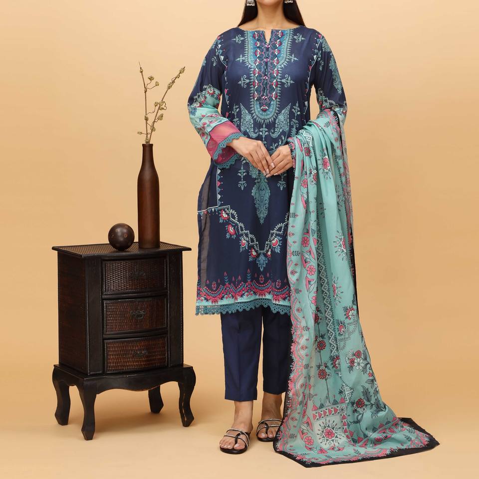 Conjunto de 3 Piezas para Mujer, Modelo PS4321, Estampado Digital Azul, Cómodo y Elegante, Talla S