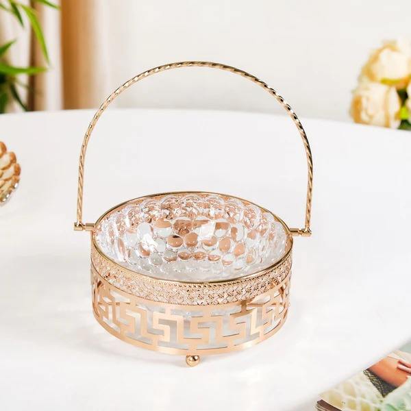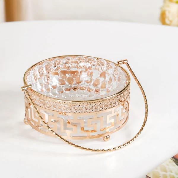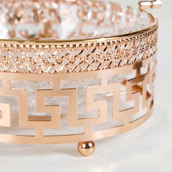 Soporte de chocolate diseñado más bonito en forma redonda con soporte de chocolate pulido dorado para servir chocolate y servir postres