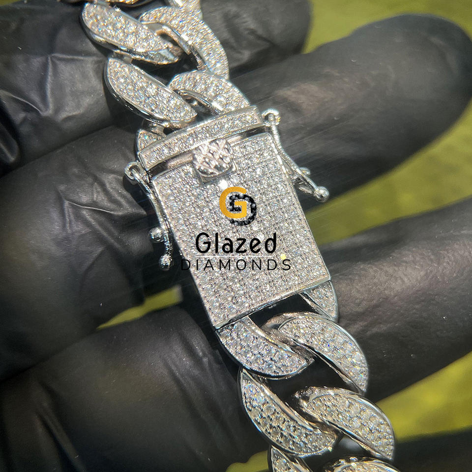 Pretty Eye Catching Fully Iced Out Cuban Link Hip Hop Pulsera Hecha en Round Brilliant Lab Grown VVs Diamonds 10K White Gold