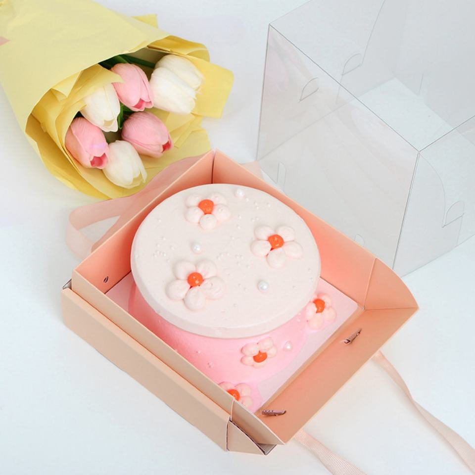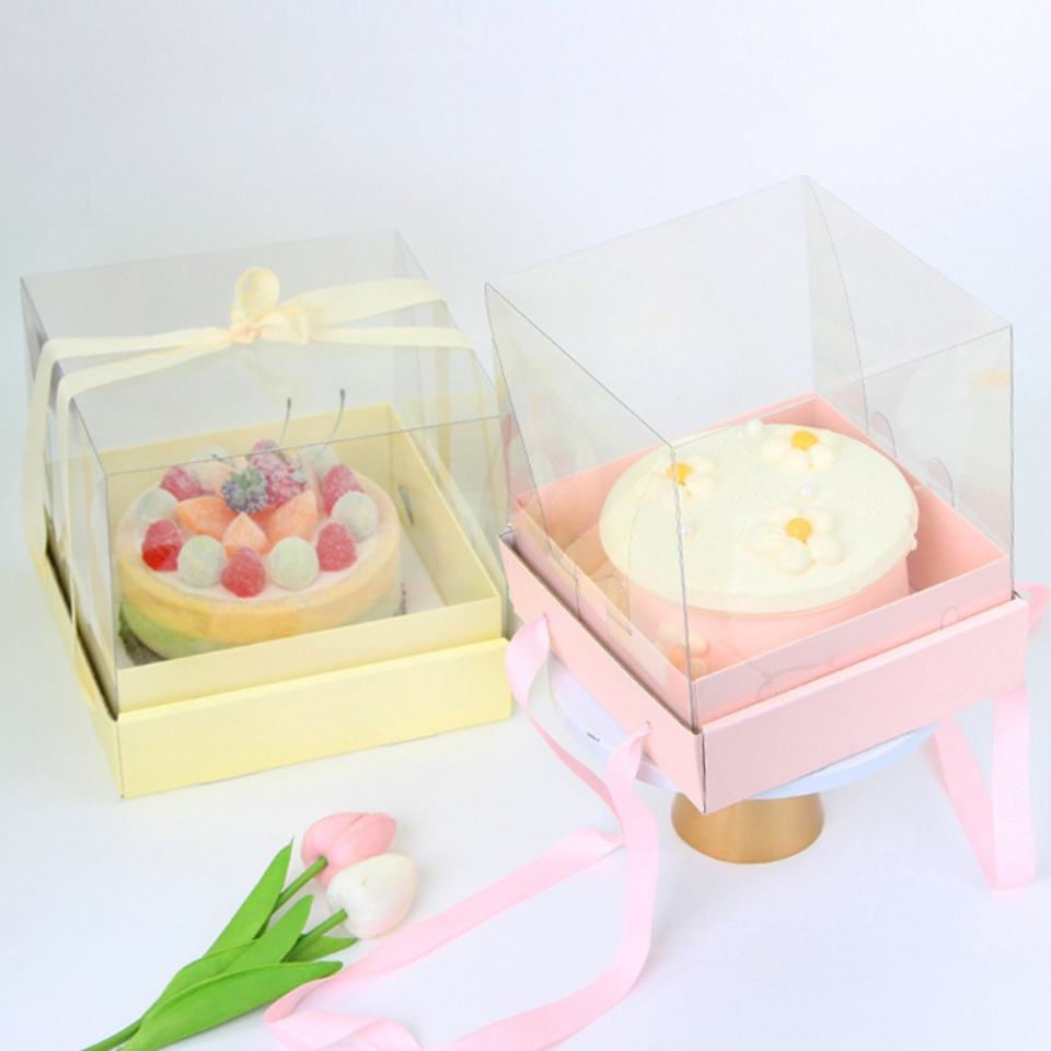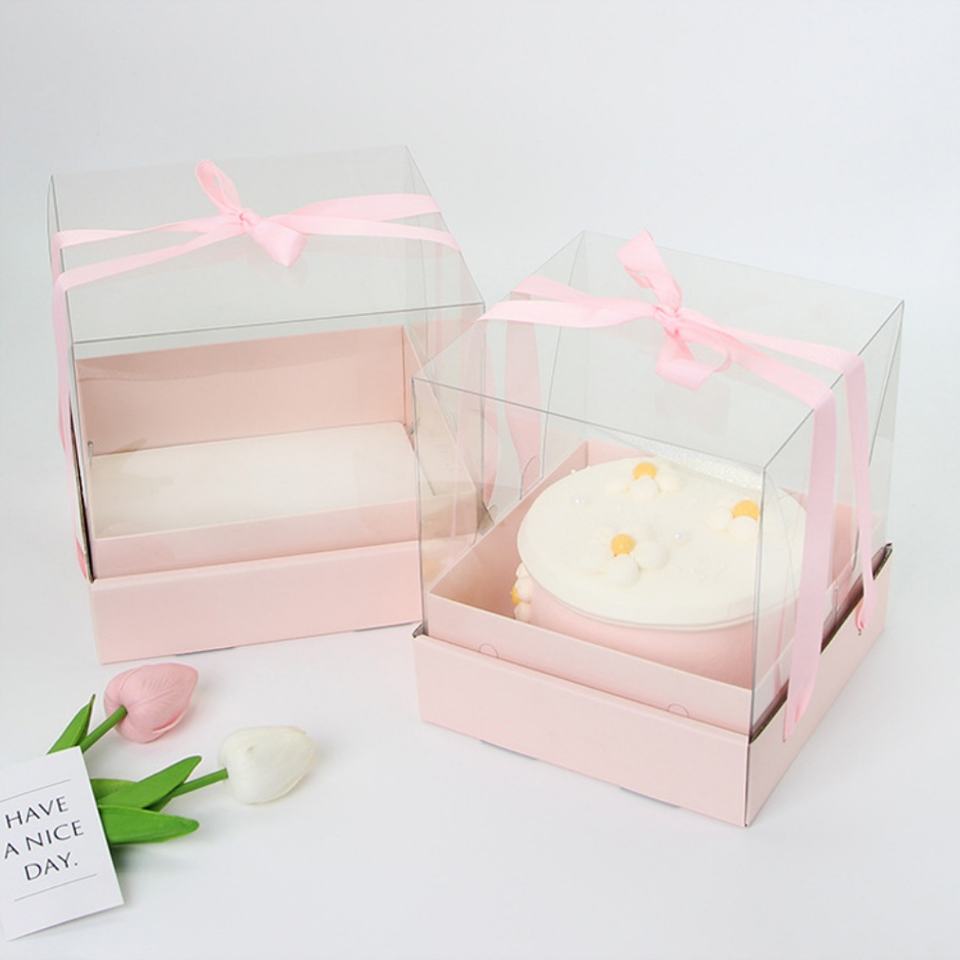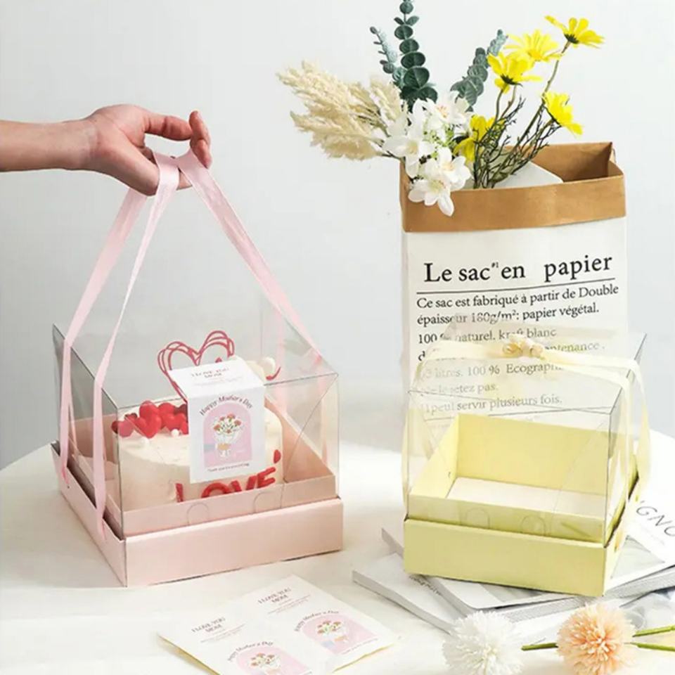 Caja de Regalo con Cinta Rosa, Bonita Caja Transparente para Pastel de Cumpleaños con Cinta Amarilla