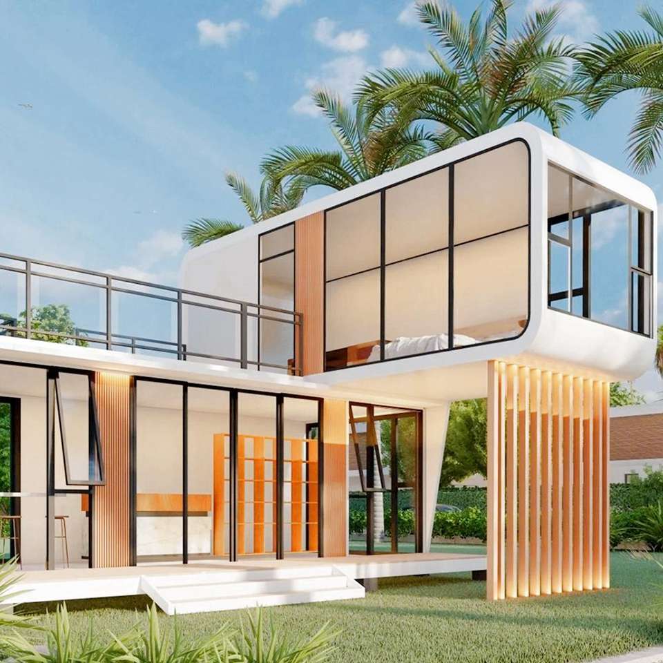 Hermosa Casa Prefabricada Modular de Diseño Tradicional de 2 Dormitorios, Mini Casa de Campo con Escaleras, Cabaña Tipo Apple