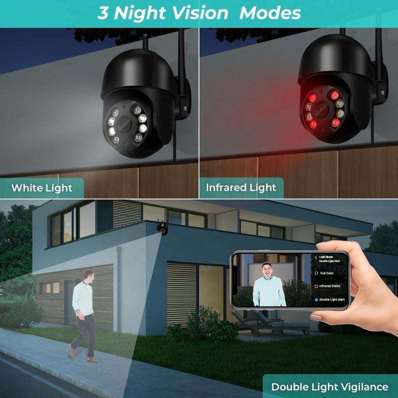 Humanos de seguimiento de movimiento, Visión nocturna, Detección de movimiento, Impermeable / a prueba de mal tiempo, PAN-TILT, De Audio de dos víasCaracterísticas especiales