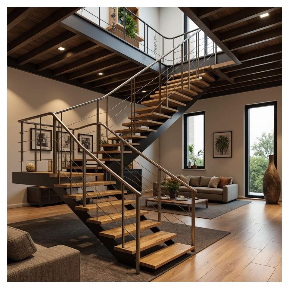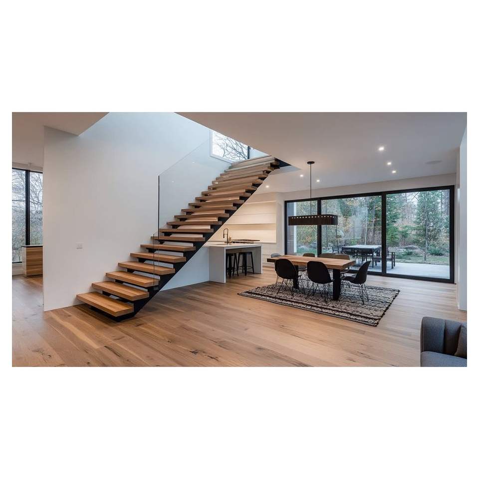 Prima, Villa moderna personalizada, escaleras rectas para interiores, escalera de madera suspendida duradera con barandilla de vidrio para apartamentos, hoteles, escalera