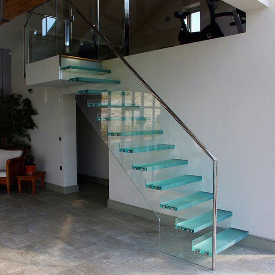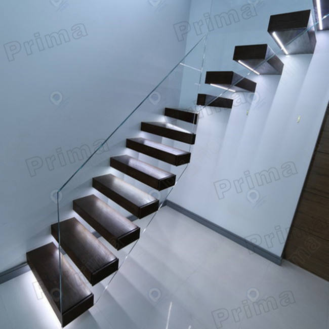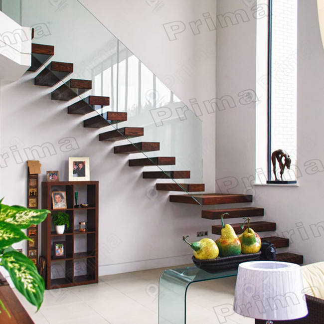Nombre:Escaleras flotantes de madera con barandilla de vidrio