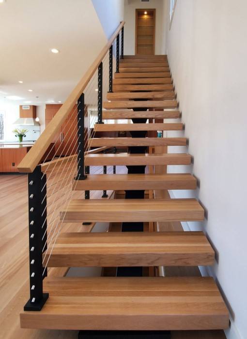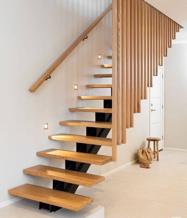 Escalera Flotante Prima Loft de Líneas Sencillas, Escalera sin Estructura Depresiva con Peldaños de Madera Sólida para Apartamentos con Techos Altos