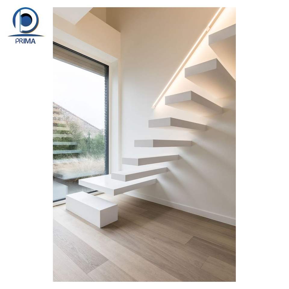 Escalera Recta de Diseño Moderno Prima para Villa, Modelos con Sensor de Movimiento de Luz de Fabricante Chino para Escaleras de Segundo Piso