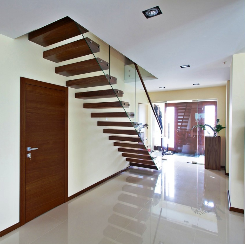 Tread:wood/tempered glass/PVC/Checkered steel