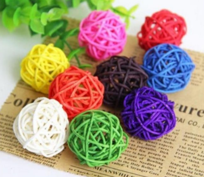 Color primario ratán bola loro masticar juguete bola pájaro pie agarrar ratán bola juguete