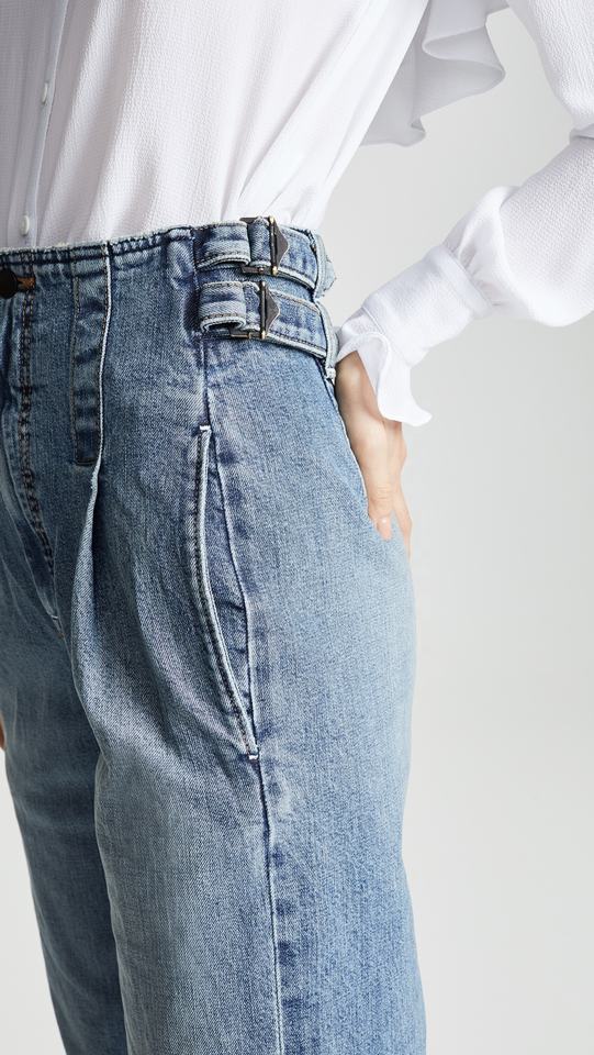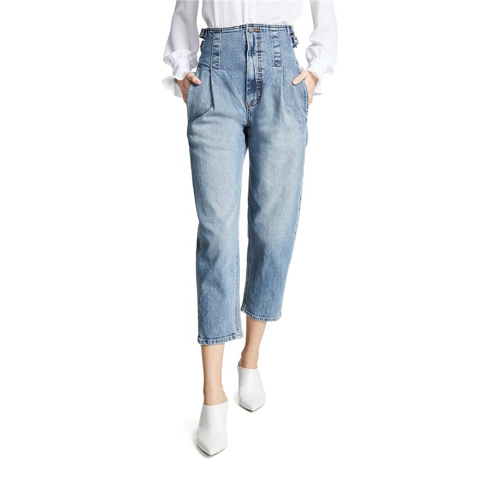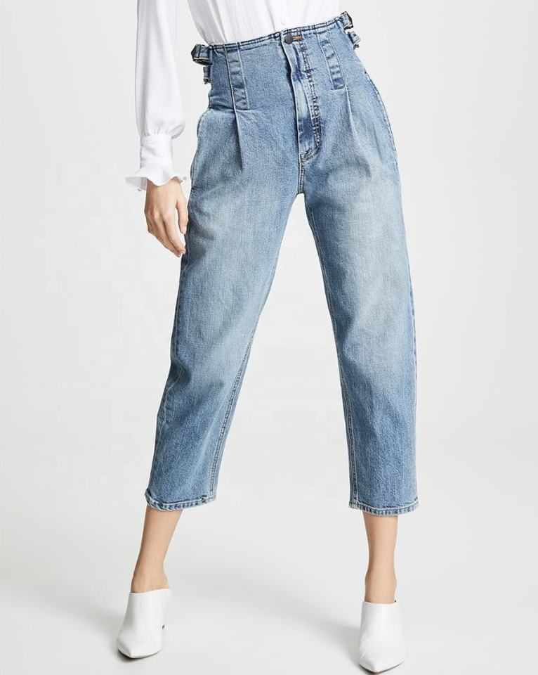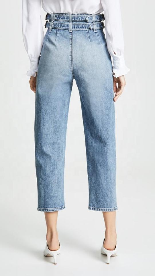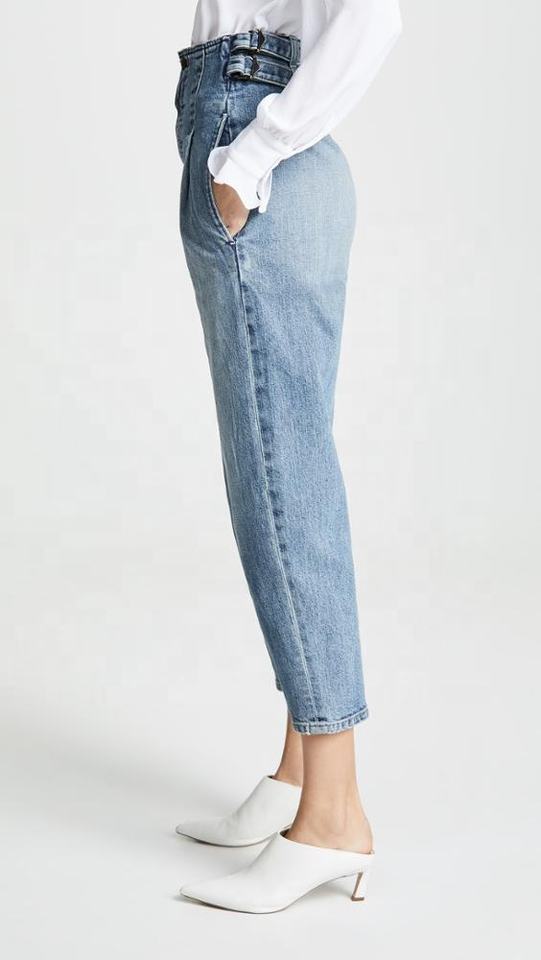 mujer moda crop alta cintura fancy girl jeans con cinturón