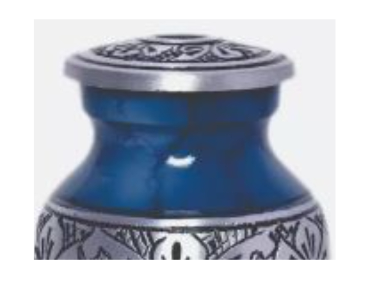 Recuerdo funerario de metal de primera calidad Recuerdo de metal Urnas de cremación Esmalte azul con banda de grabado Urnas de latón