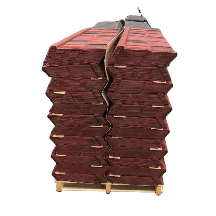 Tejas de Techo Recubiertas de Piedra Color Vino Tinto de Primera Calidad para Exportación a África