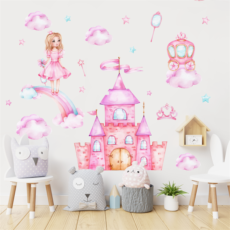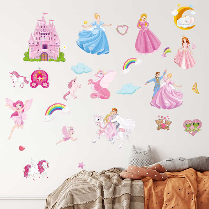 Vinilo Decorativo de Pared de Príncipe y Princesa, Papel Tapiz de Dibujos Animados para Niños, Adhesivo Decorativo para Sala de Estar, Mural Autoadhesivo para Fondo de TV