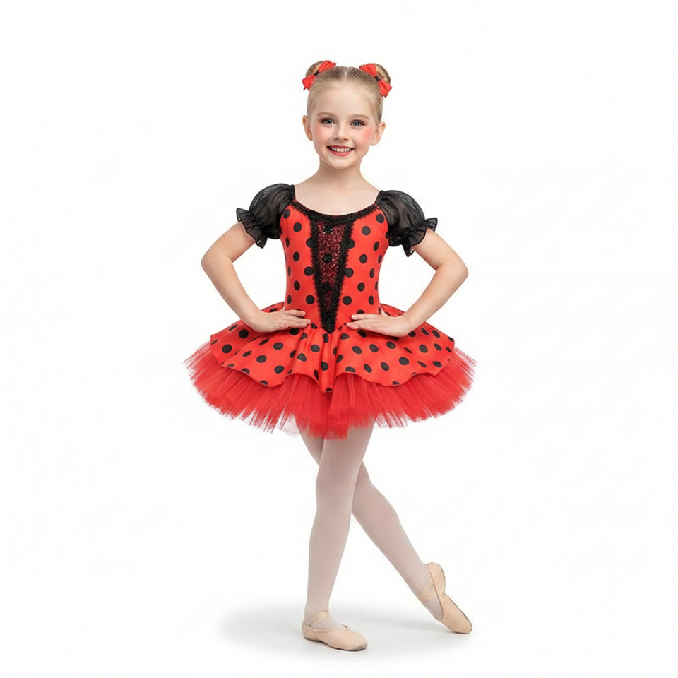 Disfraz de Bailarina Inspirado en Ladybug para Niñas, Tutú Retro Estilo Minnie Mouse con Puntos, Vestido de Ballet para Recital y Halloween