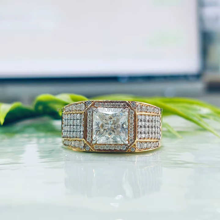 Anillo de diamantes con corte princesa y piedras laterales en oro amarillo, diseñado para una elegancia atemporal, radiante y un lujo audaz pero clásico.