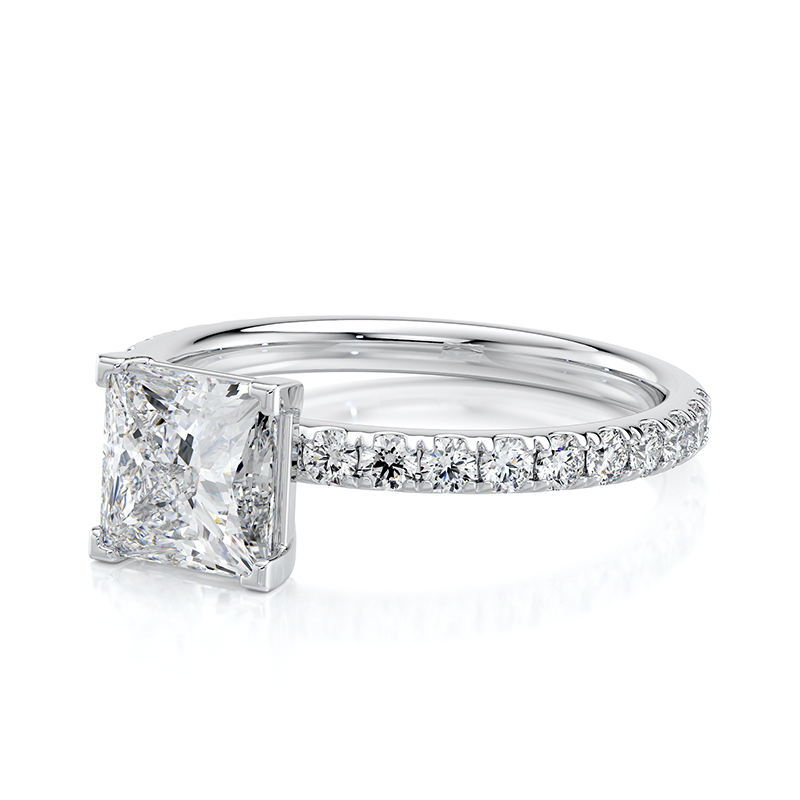 Anillo de Compromiso y Boda Clásico con Diamante Cultivado en Laboratorio, Corte Princesa, 1.50 CTW, Banda Pavé, Oro Sólido de 14K, Chapado en Rodio de Lujo, IGI