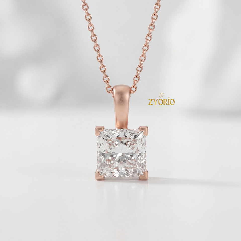 Collar con Colgante de Diamante Cultivado en Laboratorio con Corte Princesa, Cadena de Eslabones Chapada en Oro de Plata de Ley 925, Solitario para Mujer, Compromiso, Boda