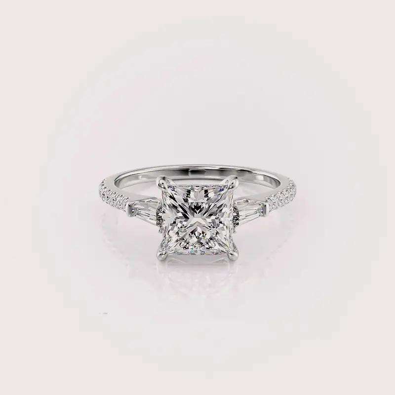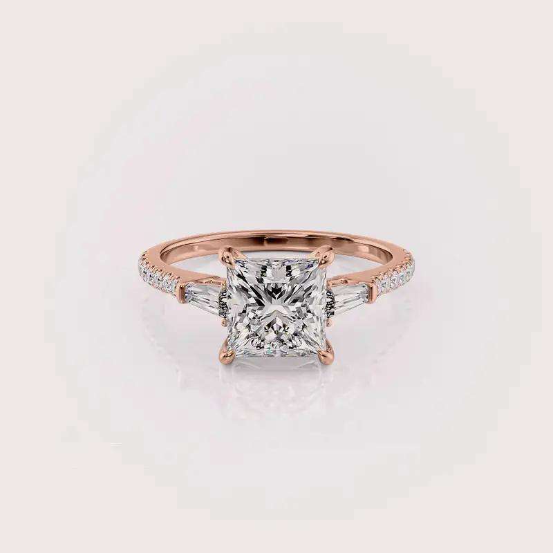 Anillo Solitario con Diamante Cultivado en Laboratorio, Corte Princesa, Oro Amarillo/Rosa y Blanco de 18 Quilates, Banda Pavé, Engaste Catedral