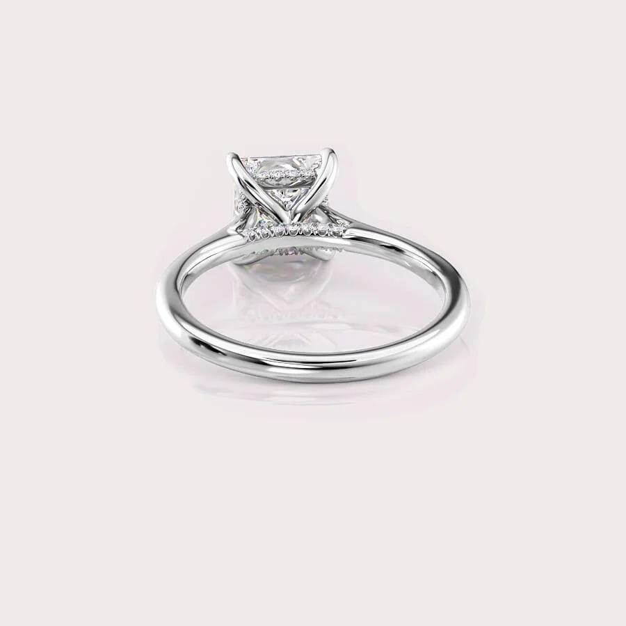 Anillo Solitario con Diamante Cultivado en Laboratorio, Corte Princesa, Engaste de Puntas, Bañado en Rodio, Certificado IGI, en Plata de Ley 925