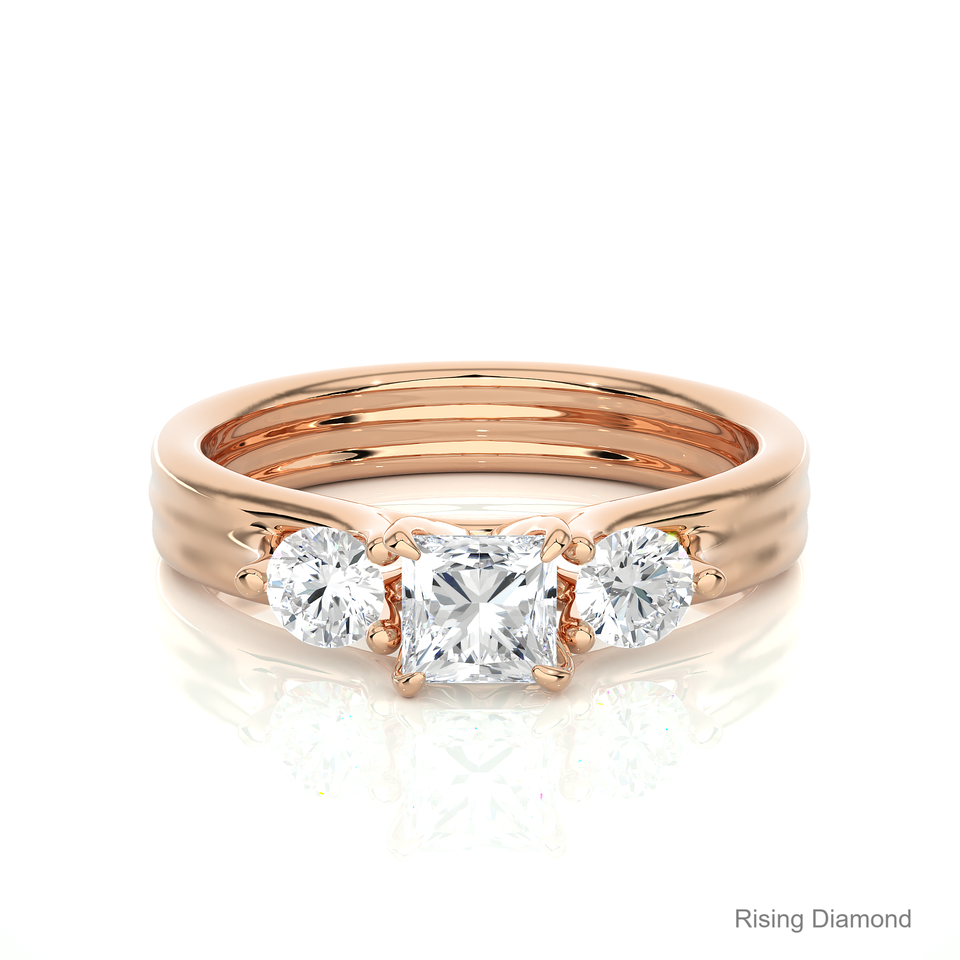 Princess Cut Lab Grown Diamond Anillo de compromiso de tres piedras Anillo de regalo de aniversario de oro rosa para ella