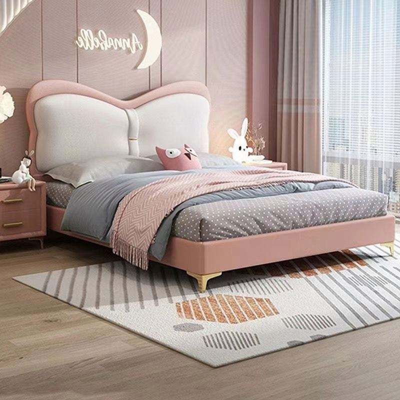 Cama de Princesa de Madera, Tamaño Completo, Tapizada, Cómoda, Moderna, Minimalista, para Niñas, Dormitorio Juvenil, Diseño Chic