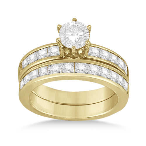 Anillo de Compromiso y Conjunto Nupcial Princesa con Diamantes, Oro Amarillo de 14k, 1.10ct, Conjuntos de Joyería Fina