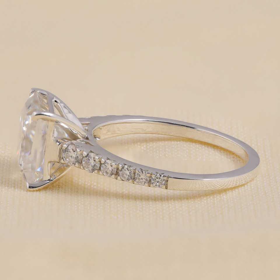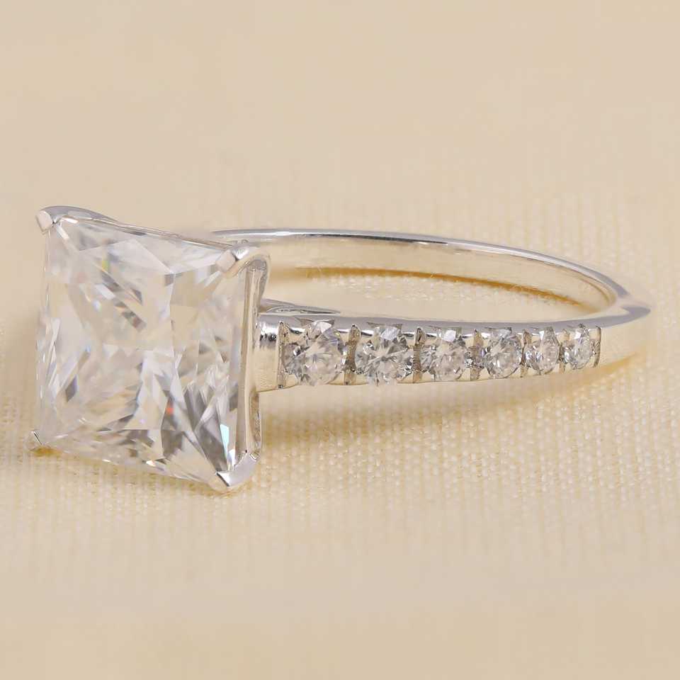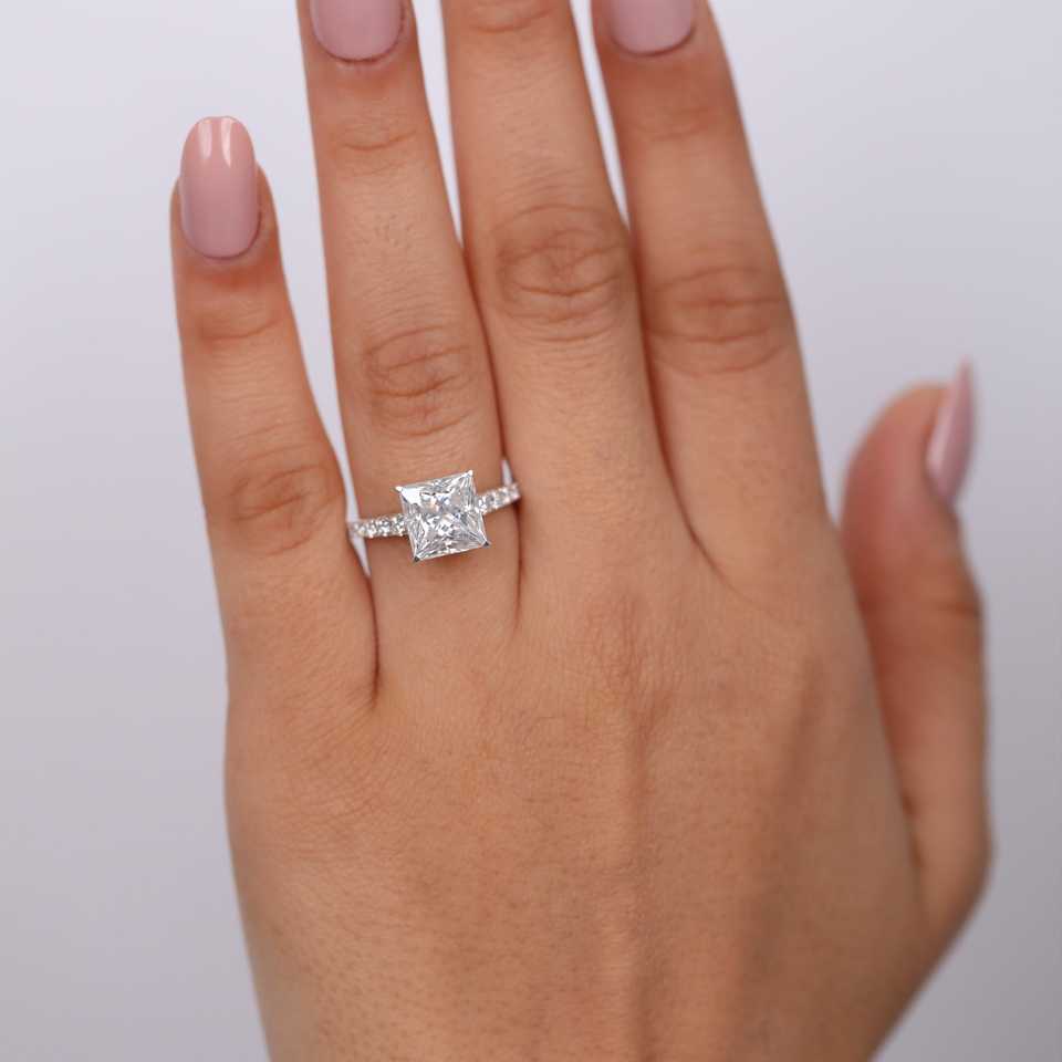 Anillo de Compromiso Solitario con Diamante Cultivado en Laboratorio Princess con Detalles de Diamantes en la Banda - Colección de Anillos de Diamantes Elegantes