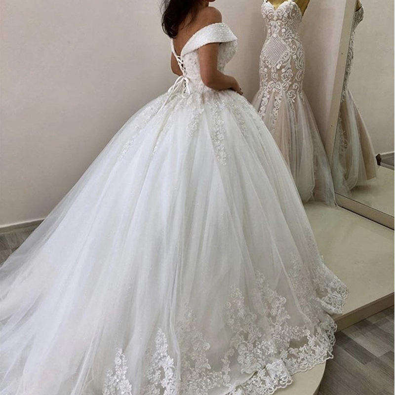 Vestido de Novia con Apliques de Encaje y Hombros Descubiertos Estilo Princesa