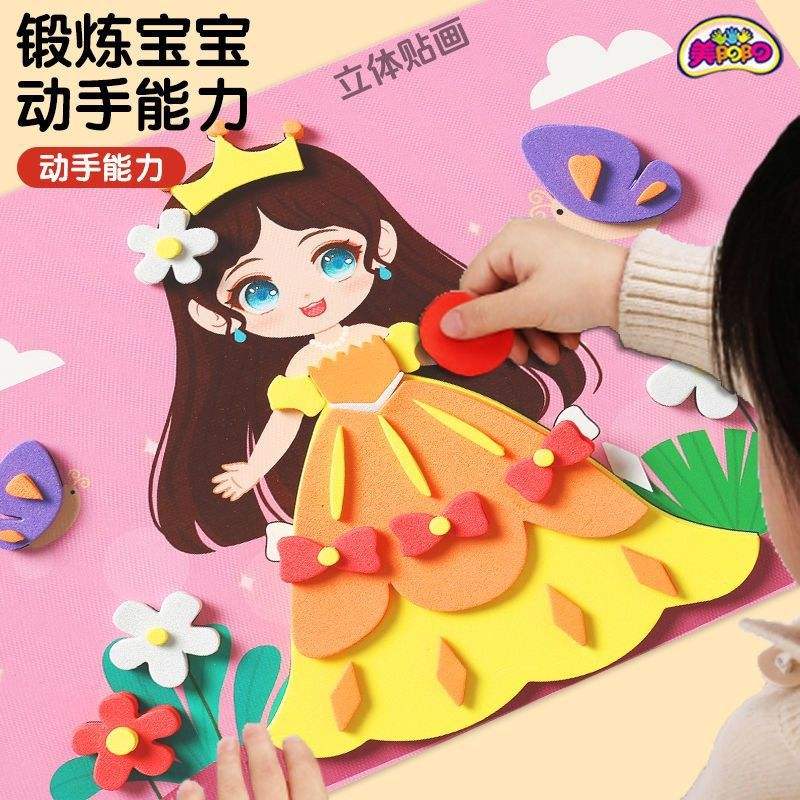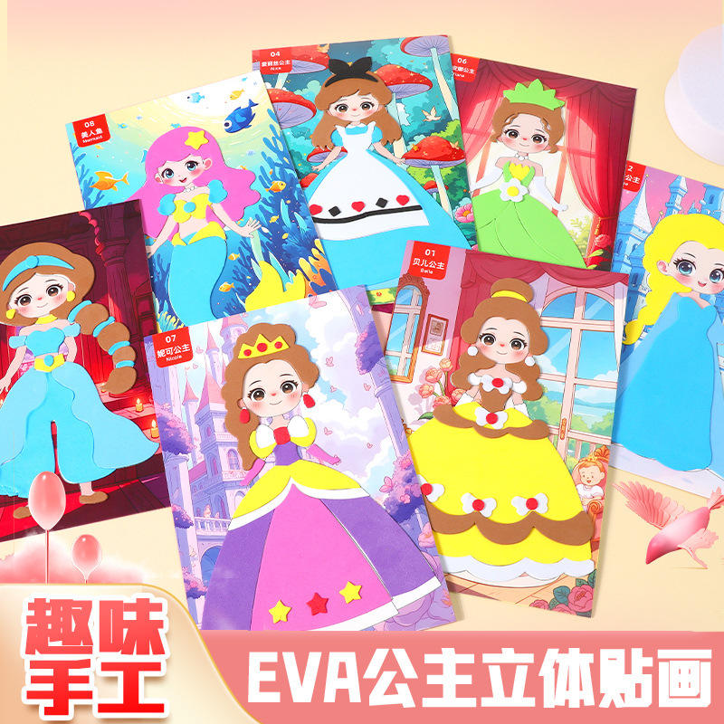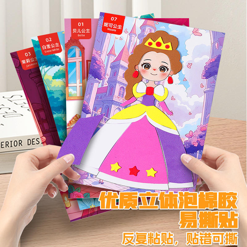 Pegatinas de princesas para niñas, juego de manualidades EVA, 6 piezas, juguetes DIY para jardín de infantes, material de juego interactivo