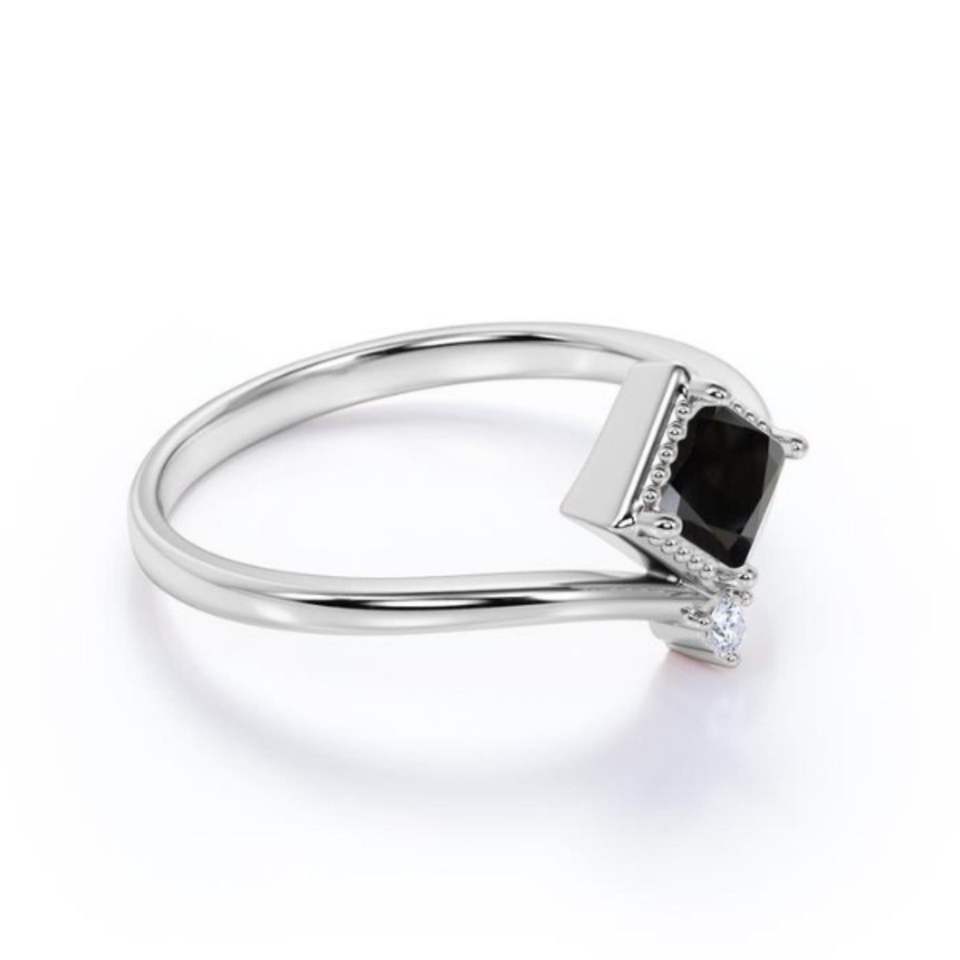 Anillo de Estilo Único con Diamantes Negros y Blancos en Engaste de Puntas Redondas para Mujer