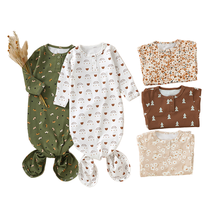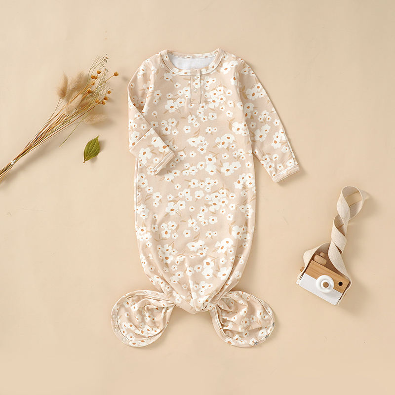 Artículo:100% algodón orgánico personalizado impresión bebé saco de dormir anudado vestido de bebé