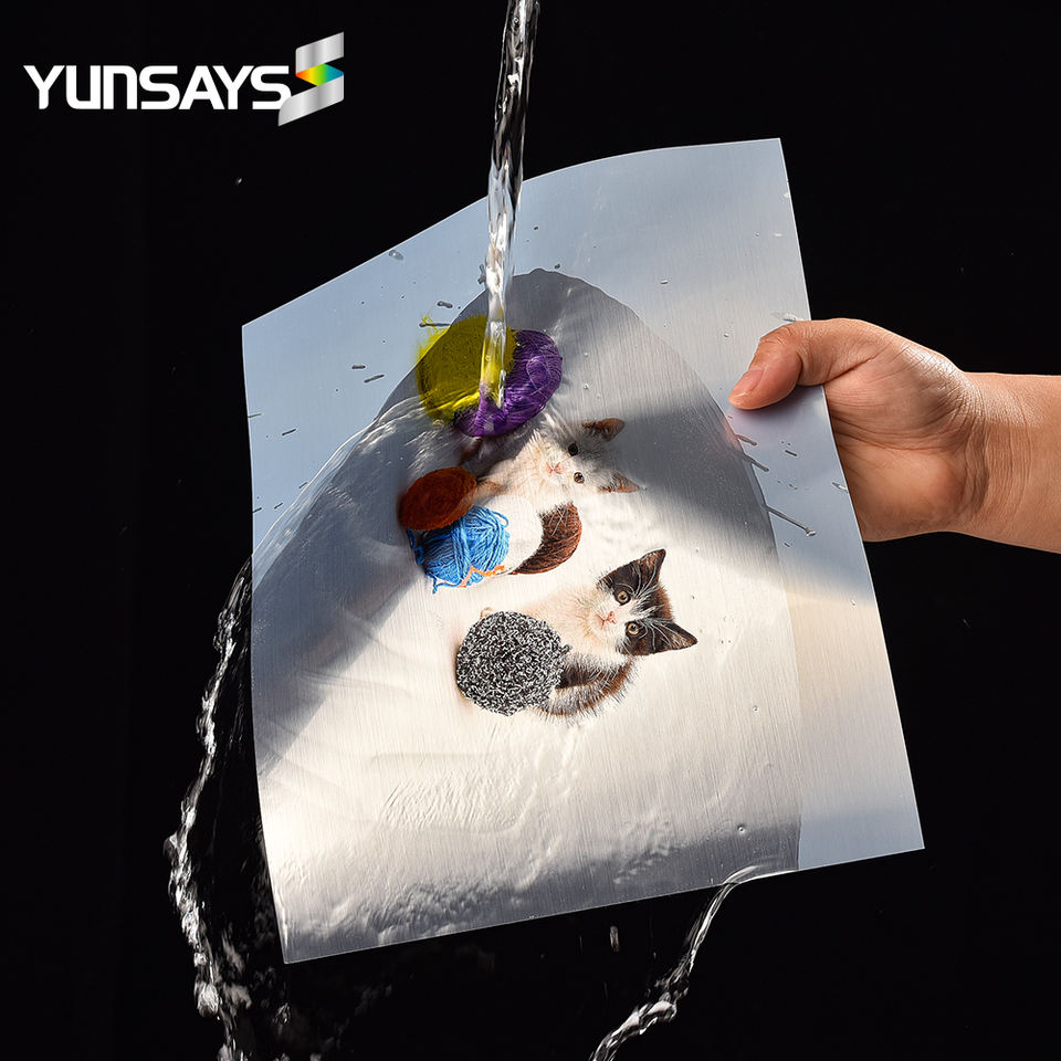 Pegatina de vinilo imprimible, papel adhesivo de inyección de tinta para mascotas cepilladas, venta al por mayor, autoadhesivo láser de inyección de tinta imprimible A4 en blanco, plata brillante