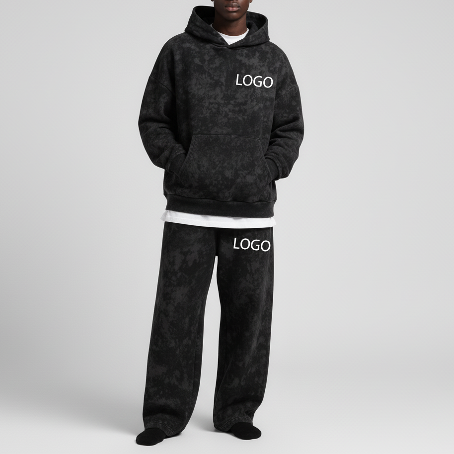 Conjunto de Chándal Personalizado para Hombre, Transpirable, Estampado, Estilo Urbano, de Poliéster/Algodón de Peso Medio, 2 Piezas, Estilo Desteñido al Sol