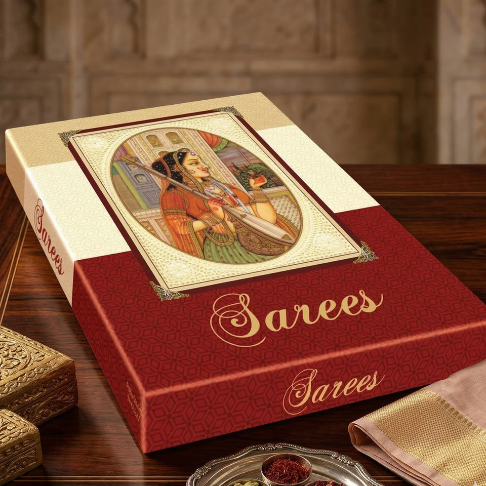 Caja de Regalo para Saree de Cartón Impreso | Caja para Saree Estilo Tapa Cielo y Tierra | Caja de Embalaje de Lujo para Saree