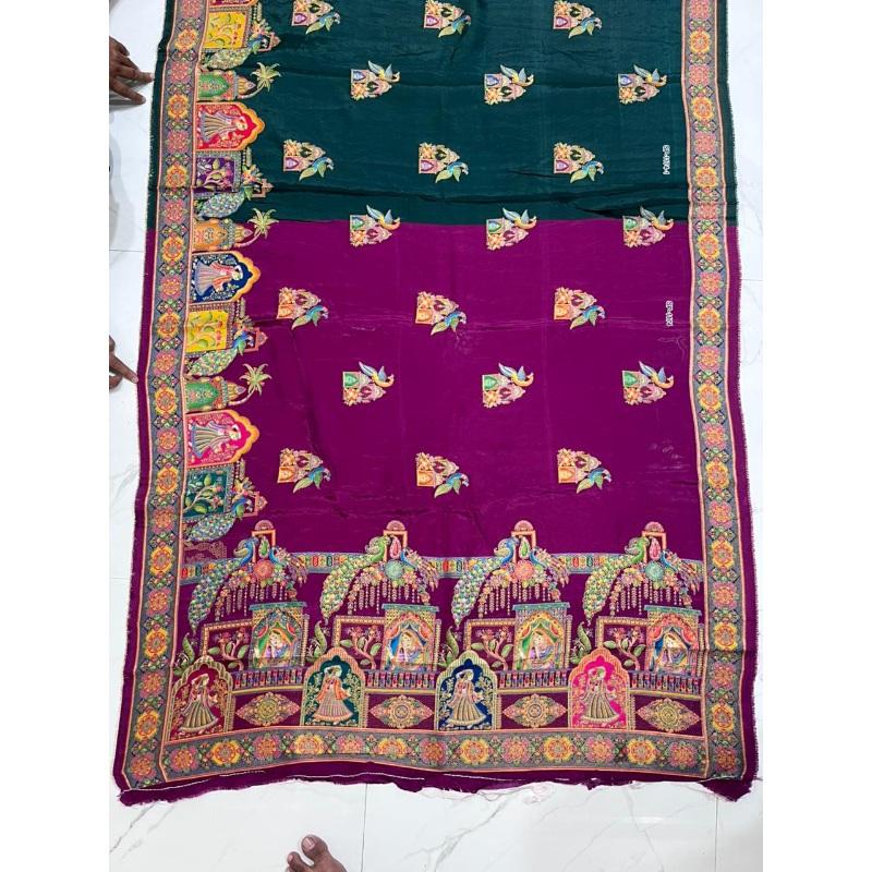 Sari de Viscosa Pura con Diseño Impreso para Eventos Culturales y Festivales, Disponible a Precio de Mayoreo