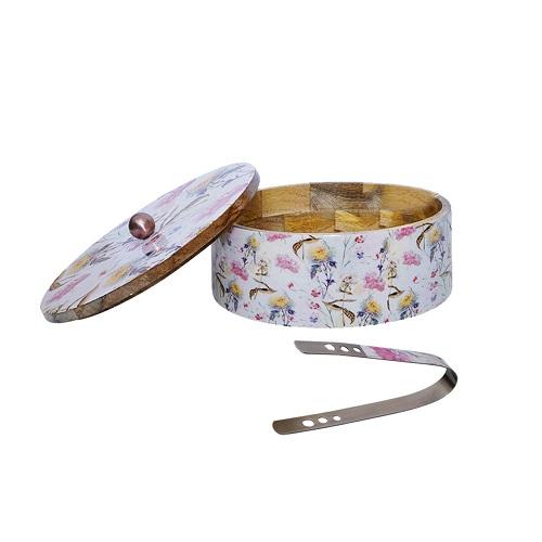 Diseño impreso de madera de color amarillo Chapati Roti Box con forma redonda decorativa que sirve Chapati Box a granel