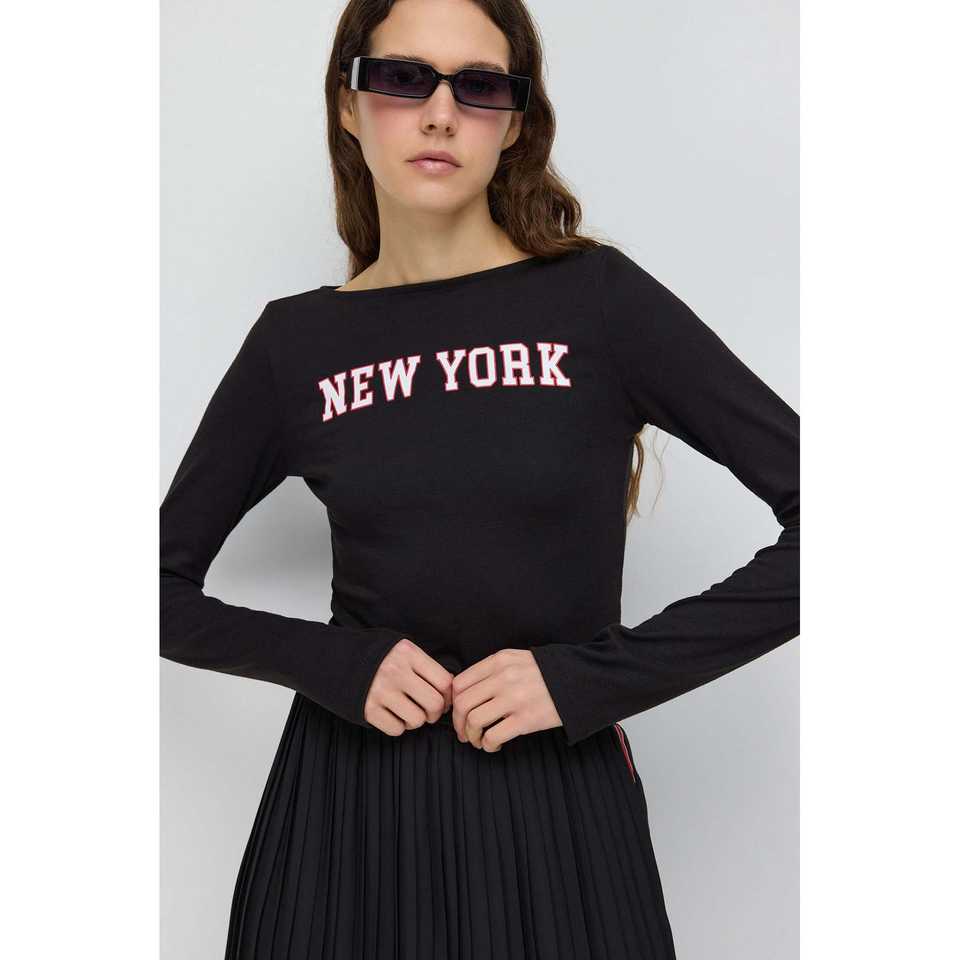 Camiseta Casual Estampada de Manga Larga y Cuello Redondo, 100% Poliéster