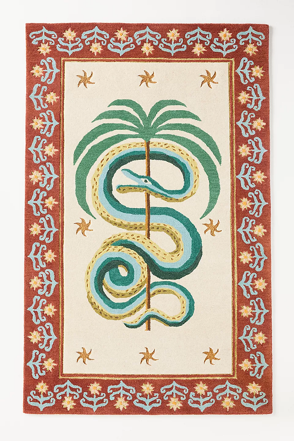 Alfombra de lana con mechones a mano de productos impresos con diseño de serpiente audaz y textura suave y duradera para una decoración única para sala de estar o dormitorio