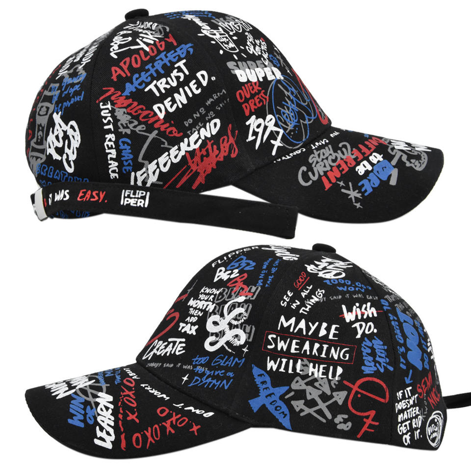 Impreso Graffiti Retro Vintage Gorras de béisbol Transpirable Algodón Denim Ajustable Oro Cobre Hebilla Unisex Sombrero de viaje