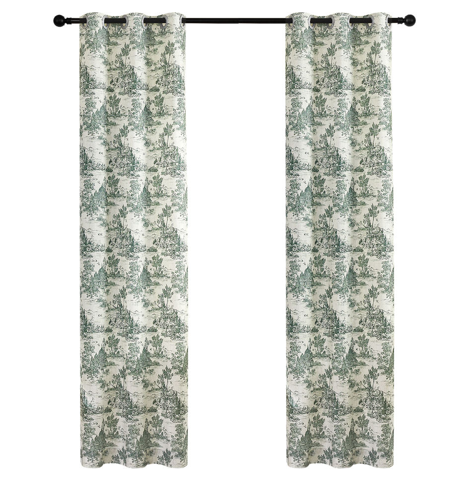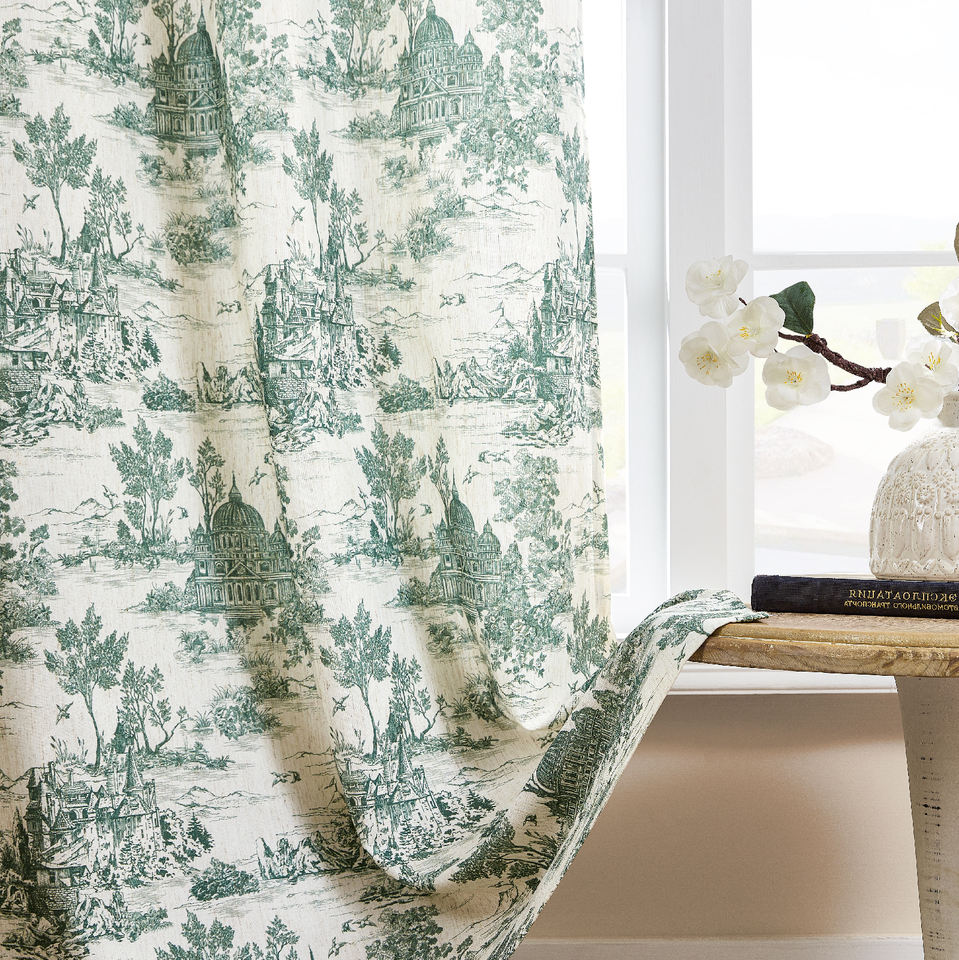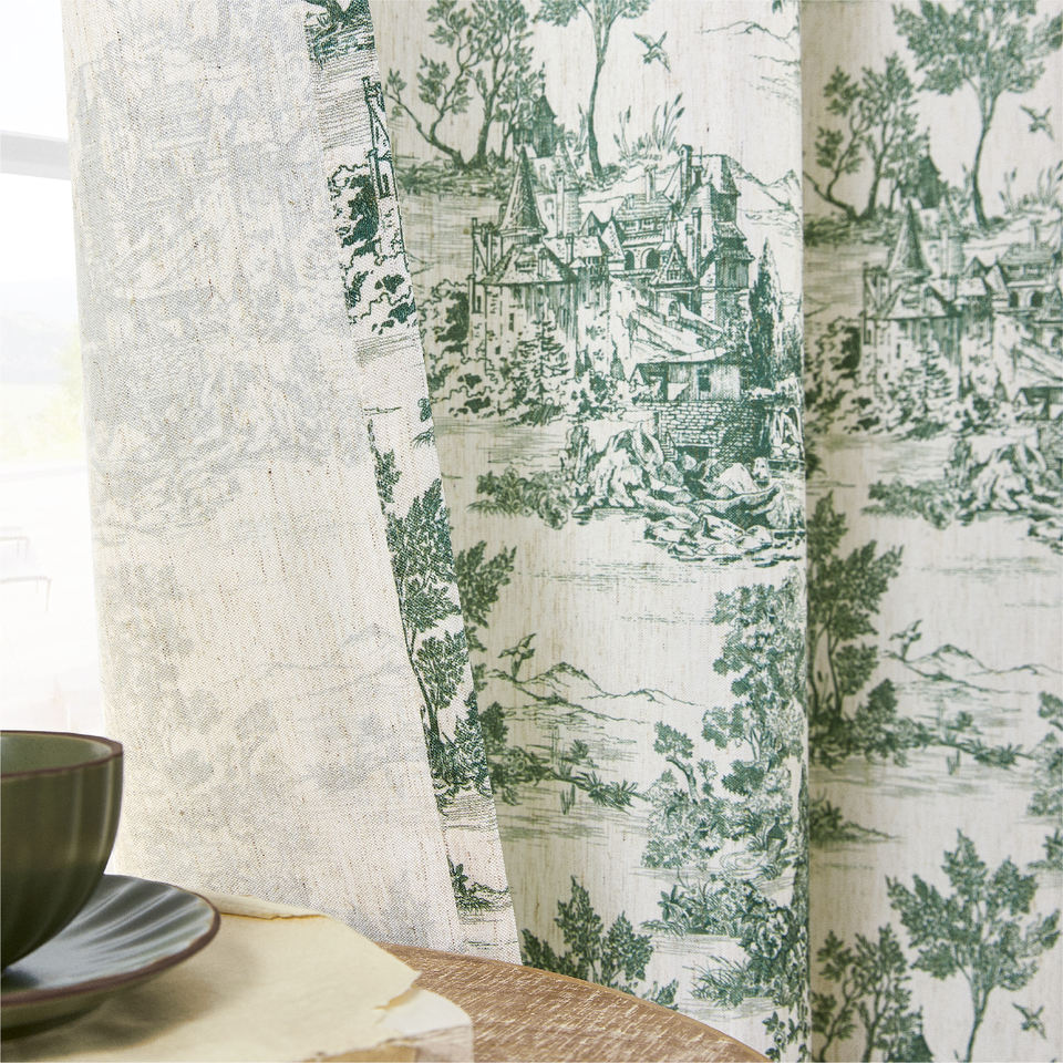 Cortinas de Lino Estampadas con Reducción de Luz, Estilo de Boceto Botánico Floral, Verde de Alta Calidad, 1 Pieza, Cortinas Tejidas de Zhejiang Plant